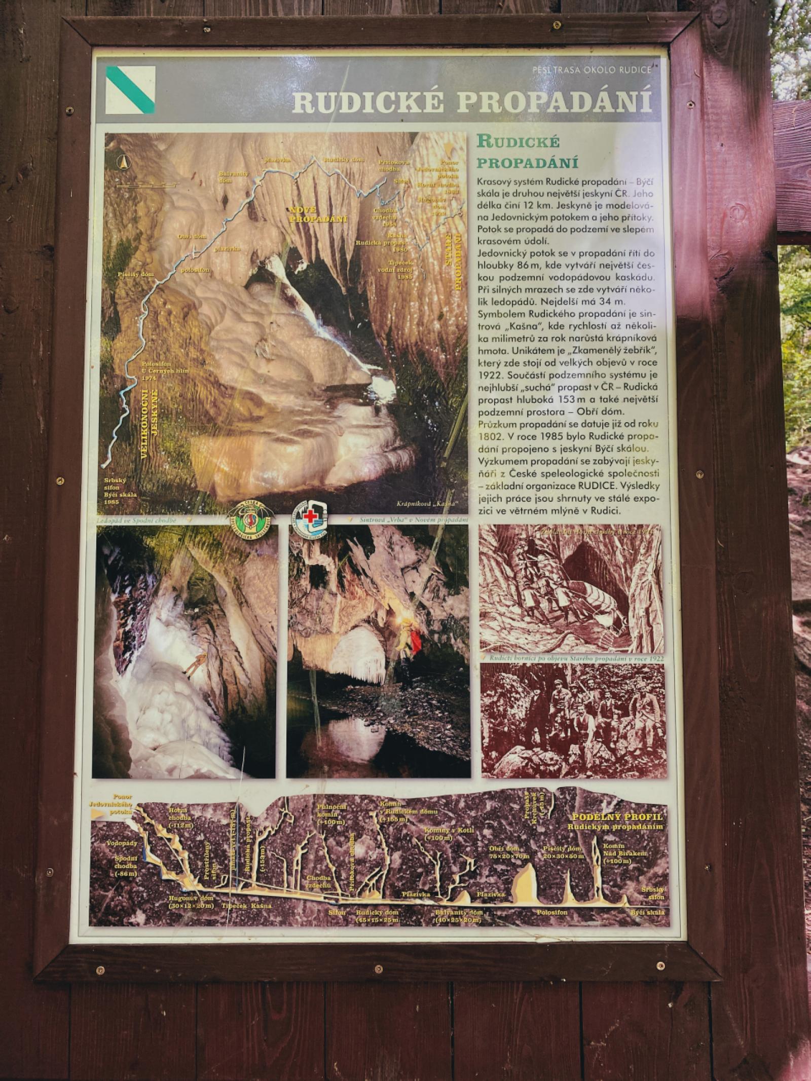 The Rudice Sinkhole is the dominant feature of the central part of the Moravian Karst Protected Landscape Area. Together with Býčí Skála (Bull Rock), it forms the second longest cave system in the Czech Republic with a total length of over thirteen kilometres!