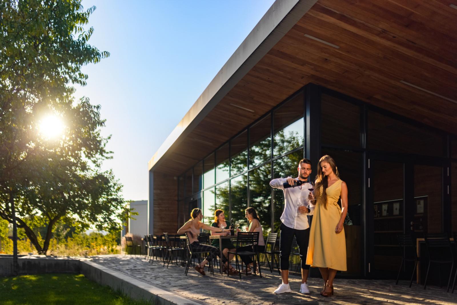 In Čejkovice, the wine lover does not know where to go first. A lover of timeless design and minimalist interiors knows - to the Škrobák family winery. From the outside, the elegant dark facade contrasts artfully with the surrounding greenery. Wine tasting here invites you to enjoy the views of the surrounding landscape thanks to the maximum openness of the entire building. The Škrobák family opted for a distinctly modern look for the winery and the combination of wine and gastronomy. The basement is where the wine production takes place, the ground floor is dedicated to wine tasting and gastronomy, and upstairs you can spend the night in the boutique hotel. The wine bistro pairs fine wine with carefully prepared food made with local ingredients. The backdrop of a stylishly clean environment promotes the ultimate dining experience.