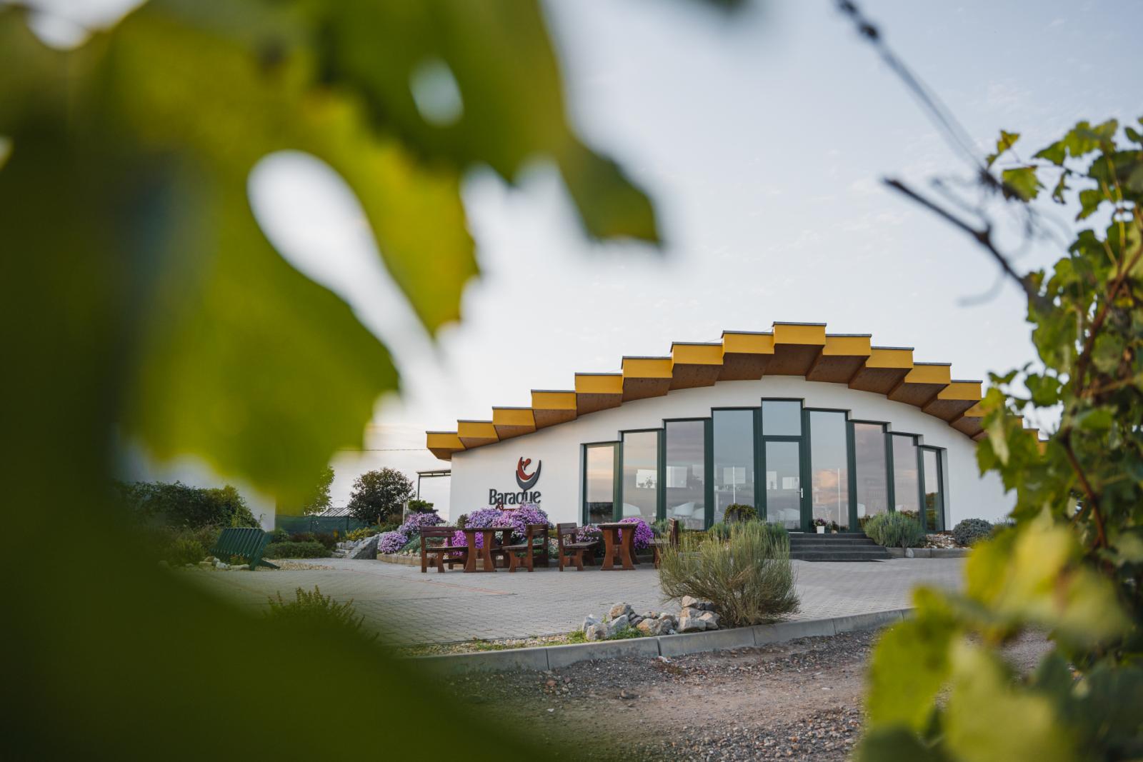Baraque is the French form of the dialect word barrack. This is what the Machovskis called the old farmhouse where they started with wine. They longed for a French-style winery in the middle of the vineyards, so when they moved from the "barrack" to a new production hall in Velké Pavlovice right next to the vineyards, the name Baraque brought them here. In the neighbourhood there is the representative Baraque Wine Gallery. Its design came from the pen of architect Radim Vrána from OK Atelier in Břeclav.