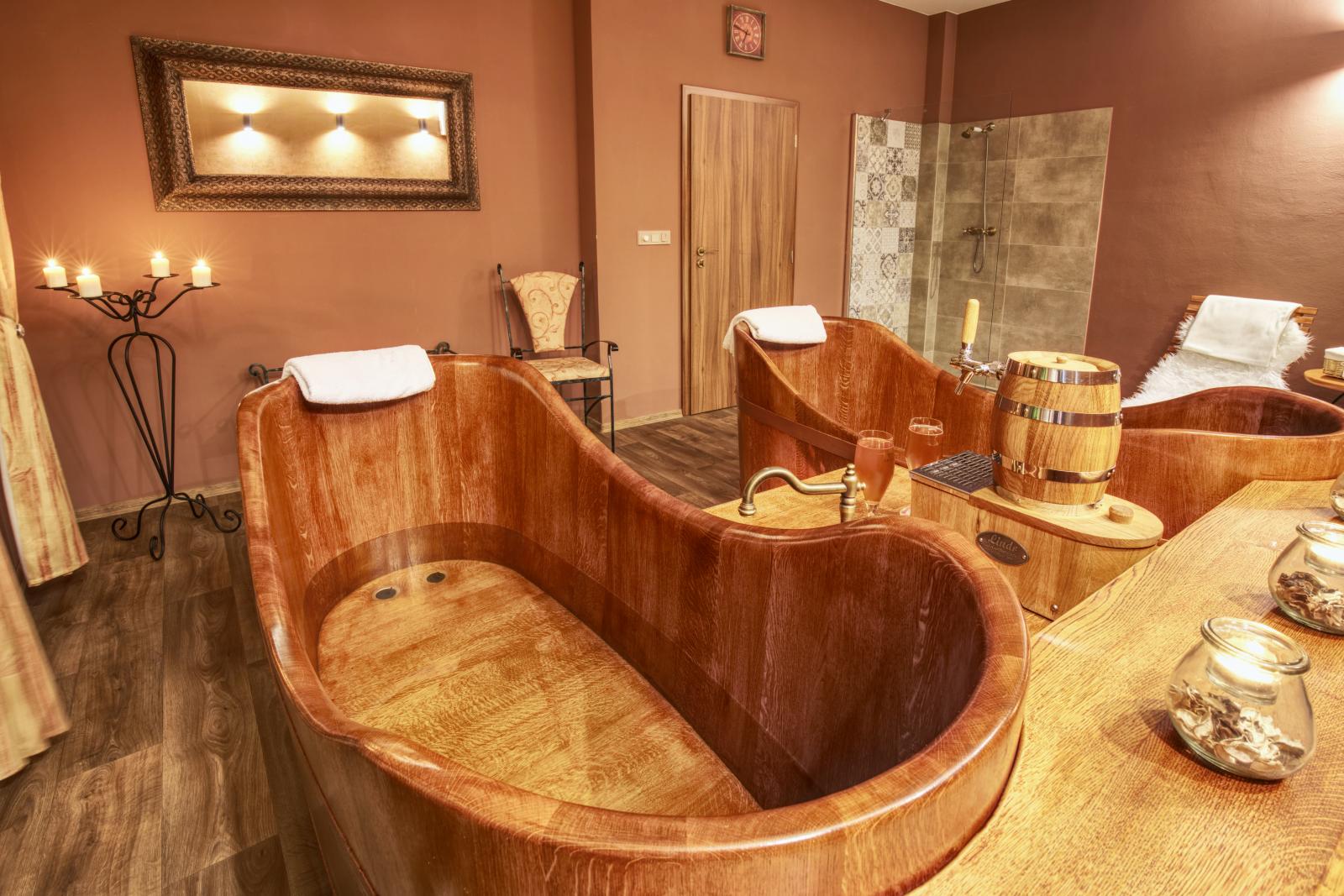 Plan a moment for yourself or an unconventional experience for two and step into a wooden tub. The local ones are made of fragrant oak and larch wood from the nearby White Carpathians.
